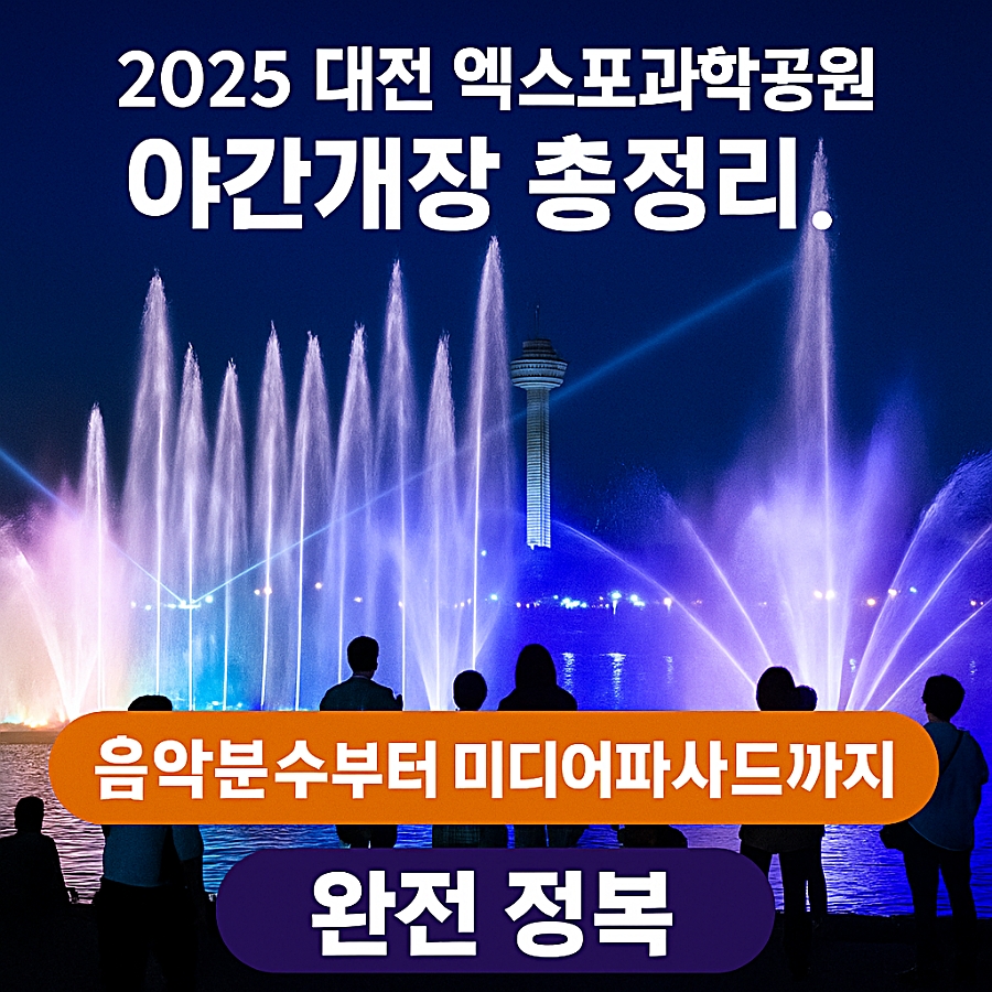 2025 대전 엑스포과학공원 야간개장 총정리! 음악분수부터 미디어파사드까지 완전 정복 2025 대전 엑스포과학공원 야간개장! 음악분수 공연, 미디어파사드, 레이저쇼까지 야경 명소 완전 정리. 공연 시간표와 관람 꿀팁 필수 확인! 안녕하세요!오늘은 매년 여름 노잼도시 대전을 유잼도시로 만드는 대전 시민들의 힐링 명소 하나 소개해드릴까 해요. 바로! "2025 대전 엑스포과학공원 음악분수 & 야간개장" 소식인데요. 낮에는 과학공원으로, 밤에는 음악과 빛의 쇼로 다시 태어나는 이곳은 요즘 가족, 연인, 친구들 모두가 찾는 인기 야경 스폿이랍니다. 그럼, 지금부터 대전의 대표 여름 야간명소 엑스포과학공원의 야간개장 정보를 하나씩 정리해볼게요 :) ▶️ 2025 엑스포과학공원 야간개장 완벽 정리! 🔸 운영..