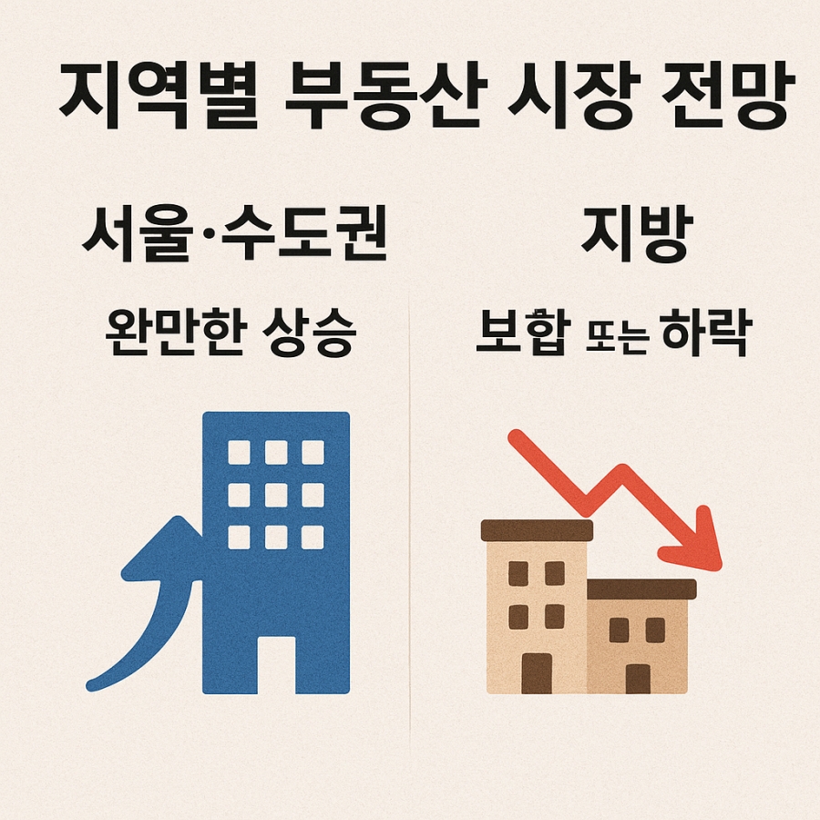 서울대 도시계획연구소의 최근 보고서에서도 서울 및 수도권은 교통과 인프라 개발 호재로 인해 상승 전망을 유지하지만, 지방 도시들의 경우 인구 감소와 경기 침체가 이어져 하락 또는 보합세가 예상된다고 밝혔습니다.