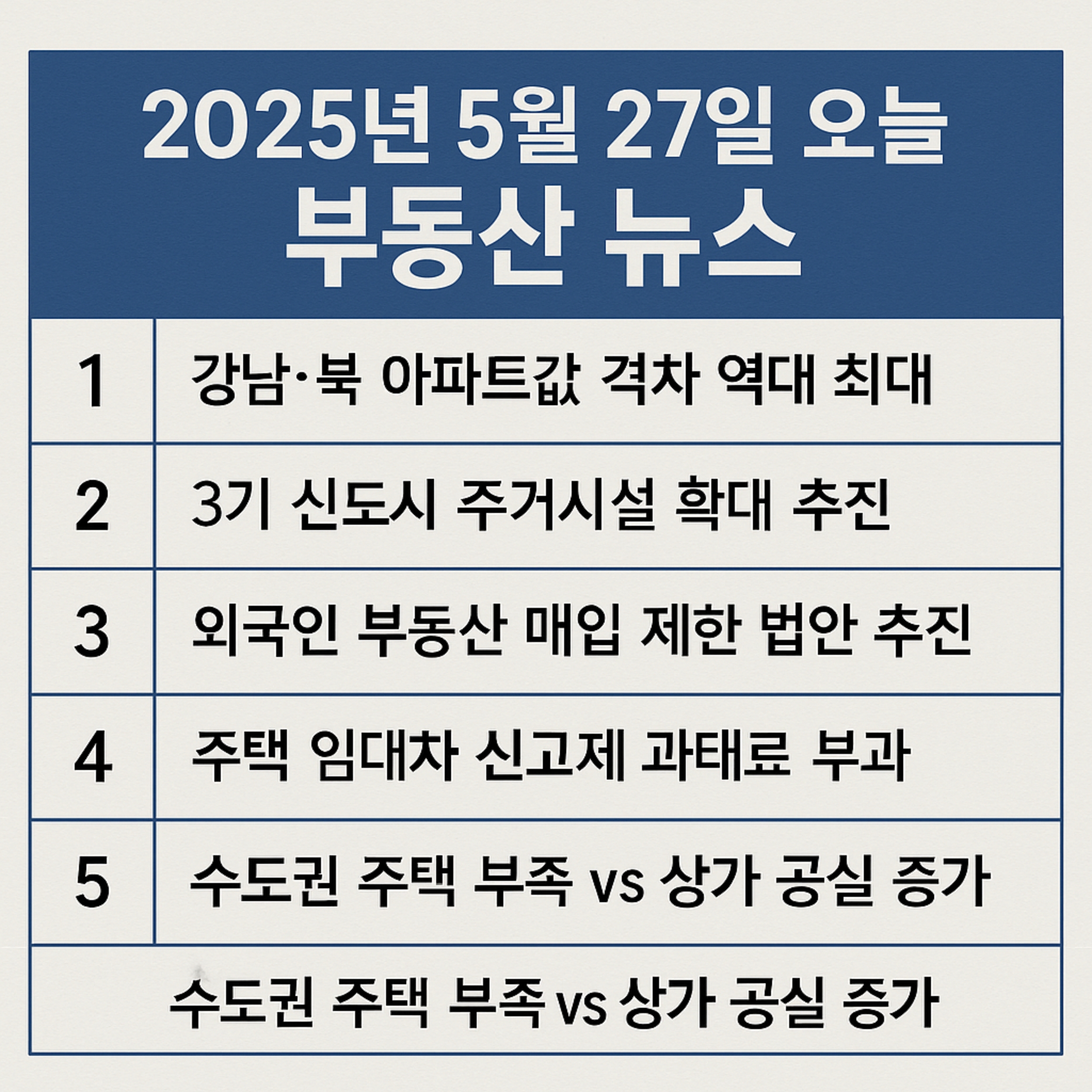 [2025년 5월 27일 부동산 뉴스 총정리 – 서울 아파트 격차, 3기 신도시 정책, 외국인 매입 제한까지!]